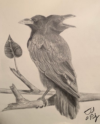 Late last year, I discovered completely by accident that I can sketch and draw pretty well. For the extended, bizarre account of how I stumbled upon this realization, read my post, How It Came To Be That I Started Drawing Two-Headed Crows. I began with charcoal pencils, and I’ve since expanded my toolkit to include graphite pencils and pastel colored pencils. Here are some of the drawings that I’ve completed, ranging from “pretty rough” to “pretty detailed”. I’ll keep adding to this collection, as I complete additional works.
